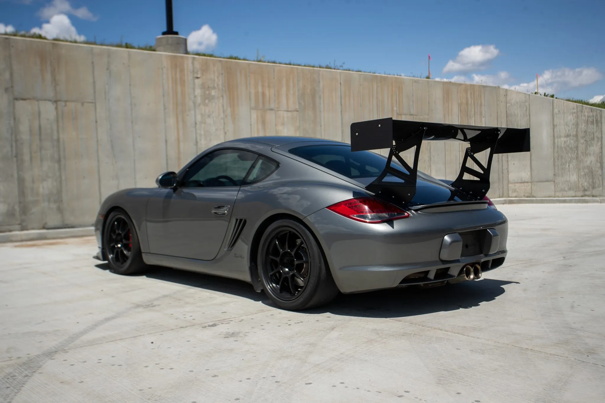 This 2010 Porsche Cayman S is powered by a 3.4-liter flat-six that is said to have been fitted with a TPC Racing turbocharger kit, a Nikasil-plated block, CP-Carillo connecting rods and pistons, and a third center-mount radiator kit.